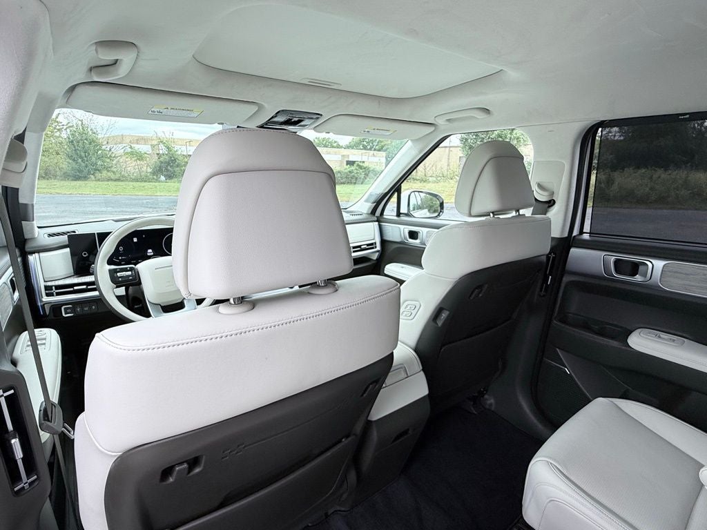 Santa Fe Hybrid Calligraphy, 4D Sport Utility, 6-Speed Automatic with Shiftronic, White, Beige Leather, 12 Speakers, 3rd row seats: bench, 4-Wheel Disc Brakes, Apple CarPlay & Android Auto, Auto High-beam Headlights, Automatic temperature control, Brake assist, Cargo Net, Cargo Tray, Electronic Stability Control, Exterior Parking Camera Rear, First Aid Kit, Four wheel independent suspension, Front dual zone A/C, Heads-Up Display, Heated & Ventilated Front Bucket Seats, Heated door mirrors, Heated rear seats, Heated steering wheel, Memory seat, Navigation System, Option Group 01, Overhead console, Power Liftgate, Power moonroof, Premium Nappa Leather Seat Trim, Radio: AM/FM/HD Bose Premium Audio System, Rear window defroster, Remote keyless entry, Security system, Speed-sensing steering, Spoiler, Tow Hitch, Ventilated front seats, Wheels: 20 x 8.5J Unique Dark Finish Alloy.