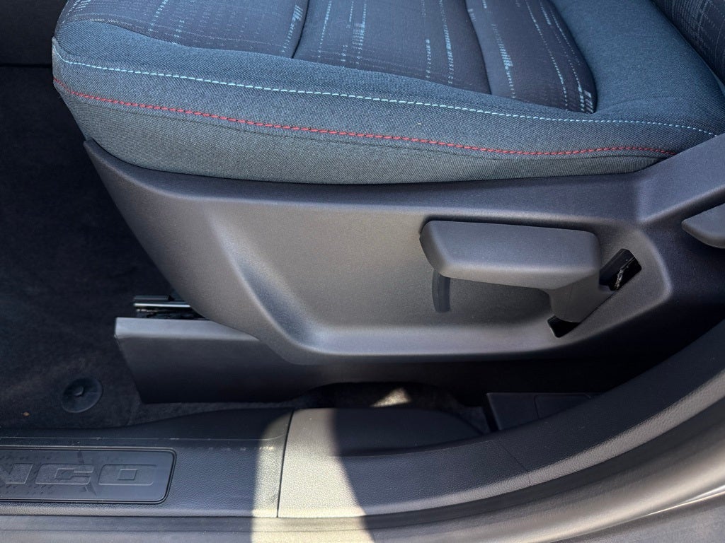 Equipment Group 250A, Bronco Sport Heritage, 4D Sport Utility, 4WD, Gray Metallic, Navy Pier Cloth, 4-Wheel Disc Brakes, AM/FM Stereo, Automatic temperature control, Brake assist, Electronic Stability Control, Four wheel independent suspension, Front Driver/Passenger Seat Back Map Pockets, Fully automatic headlights, Illuminated entry, Overhead console, Plaid Cloth Front Bucket Seats, Rear Parking Sensors, Remote keyless entry, Security system, SiriusXM, Steering wheel mounted audio controls, SYNC 4 w/Enhanced Voice Recognition, Wheels: 17 Oxford White-Painted Aluminum, 6 Speakers, ABS brakes, Air Conditioning, Alloy wheels, Compass, Delay-off headlights, Driver door bin, Driver vanity mirror, Dual front impact airbags, Dual front side impact airbags, Emergency communication system: SYNC 4 911 Assist, Front anti-roll bar, Front Bucket Seats, Front Center Armrest, Front License Plate Bracket, Front reading lights, Heated door mirrors, Knee airbag, Low tire pressure warning, Occupant sensing airbag, Outside temperature display, Overhead airbag, Panic alarm, Passenger door bin, Passenger vanity mirror, Power door mirrors, Power steering, Power windows, Radio data system, Rear anti-roll bar, Rear reading lights, Rear seat center armrest, Rear window defroster, Rear window wiper, Speed control, Speed-sensing steering, Speed-Sensitive Wipers, Split folding rear seat, Tachometer, Telescoping steering wheel, Tilt steering wheel, Traction control, Trip computer, and Variably intermittent wipers.