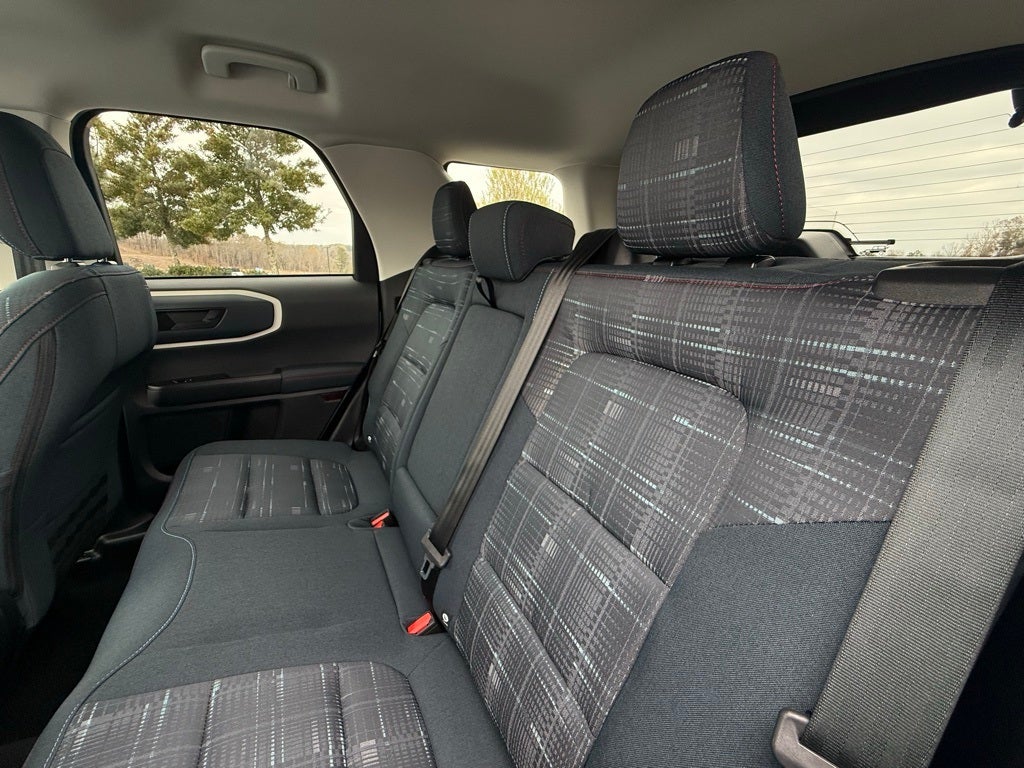 Equipment Group 250A, Bronco Sport Heritage, 4D Sport Utility, 4WD, Blue, Navy Pier Cloth, 4-Wheel Disc Brakes, 6 Speakers, AM/FM Stereo, Automatic temperature control, Brake assist, Electronic Stability Control, Four wheel independent suspension, Front Center Armrest, Front Driver/Passenger Seat Back Map Pockets, Fully automatic headlights, Heated door mirrors, Illuminated entry, Overhead console, Plaid Cloth Front Bucket Seats, Rear Parking Sensors, Remote keyless entry, Security system, SiriusXM, Steering wheel mounted audio controls, SYNC 4 w/Enhanced Voice Recognition, Wheels: 17 Oxford White-Painted Aluminum, ABS brakes, Air Conditioning, Alloy wheels, Auto High-beam Headlights, Compass, Delay-off headlights, Driver door bin, Driver vanity mirror, Dual front impact airbags, Dual front side impact airbags, Emergency communication system: SYNC 4 911 Assist, Front anti-roll bar, Front License Plate Bracket, Front reading lights, Knee airbag, Low tire pressure warning, Occupant sensing airbag, Outside temperature display, Overhead airbag, Panic alarm, Passenger door bin, Passenger vanity mirror, Power door mirrors, Power steering, Power windows, Radio data system, Rear anti-roll bar, Rear reading lights, Rear seat center armrest, Rear window defroster, Rear window wiper, Speed control, Speed-sensing steering, Speed-Sensitive Wipers, Split folding rear seat, Tachometer, Telescoping steering wheel, Tilt steering wheel, Traction control, Trip computer, and Variably intermittent wipers.