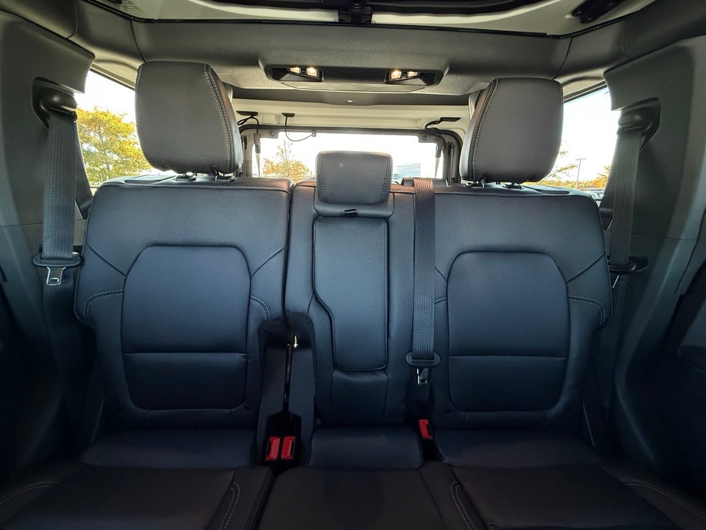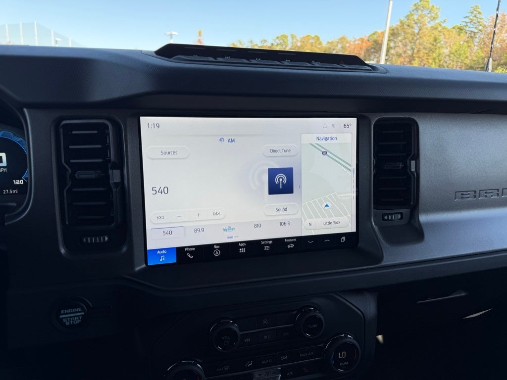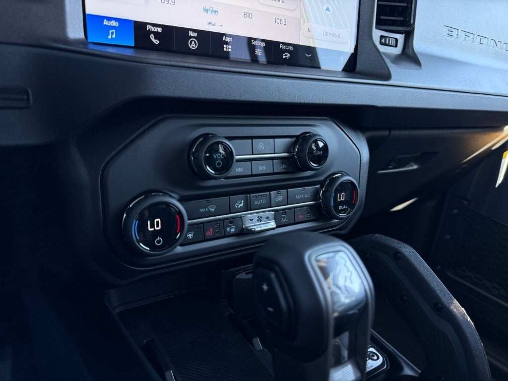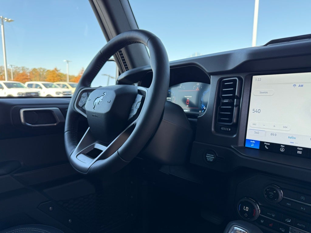 Black Appearance Package (Black Molded-In-Color Door Handles, Black Molded-In-Color Fender Flares, Black Molded-In-Color Sideview Mirror Caps, and Black-Painted Molded-In-Color Grille), Equipment Group 332A Mid Package (2-Door Intelligent Access w/Lock/Unlock, Ambient Footwell Lighting, Connected Navigation, Dr & Pass Illuminated Sliding Visor Vanity Mirrors, Dual Smart Charging USB Ports, Dual-Zone Electronic Automatic Temperature Control, Power Outlet - Back Side of Center Floor Console, and Rear Parking Sensors), Bronco Badlands, 4D Sport Utility, 4WD, Shadow Black, Black Onyx, BLIS Blind Spot Information System, Front fog lights, Fully automatic headlights, Hard Top Sound Deadening Headliner, Heated steering wheel, Lane-Keeping System, Marine Grade Vinyl Heated Bucket Seats, Pre-Collision Assist w/Automatic Emergency Braking, Raptor-Style Running Board, Rear-View Camera, Rear-Window Defroster & Washer, Security system, Shadow Black Painted Hard Top, SiriusXM w/360L, Wheels: 17 Carbonized Gray-Painted Aluminum, 4-Wheel Disc Brakes, 4.7 Axle Ratio, 7 Speakers, ABS brakes, Air Conditioning, Alloy wheels, AM/FM Stereo, Auto High-Beam Headlamps, Auto-dimming Rear-View mirror, Brake assist, Compass, Delay-off headlights, Driver door bin, Driver vanity mirror, Dual front impact airbags, Dual front side impact airbags, Electronic Stability Control, Emergency communication system: 911 Assist, Front anti-roll bar, Front Center Armrest, Front License Plate Bracket, Front reading lights, Front wheel independent suspension, Heated door mirrors, Heated front seats, Illuminated entry, Integrated roll-over protection, Leather Shift Knob, Low tire pressure warning, Occupant sensing airbag, Outside temperature display, Overhead airbag, Overhead console, Panic alarm, Passenger door bin, Passenger vanity mirror, Power door mirrors, Power steering, Power windows, Radio data system, Remote keyless entry, Speed control, Split folding rear seat, Steering wheel mounted audio controls, SYNC 4, Tachometer, Telescoping steering wheel, Tilt steering wheel, Traction control, Trip computer, Variably intermittent wipers, and Voltmeter.