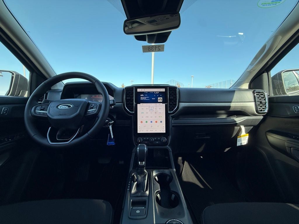 Equipment Group 301A High (12 Display in Center Stack, Cloth Front Heated Bucket Seats, Dual-Zone Electronic Climate Control (DEATC), and Power-Sliding Rear Window), FX4 Off-Road Package (Electronic-Locking Rear Differential, FX4 Off-Road Box Decal, FX4 Selectable Drive Modes, Off-Road Screen in Center Stack, Off-Road Tuned Shocks, and Trail Control), Sport Appearance Package (Gray Painted Center Bar & Grille Surround, Gray Painted Front Fascia & Rear Bumper, and Sport Box Decal), Ranger XLT, 4D Crew Cab, 4WD, Shadow Black, Ebony Cloth, 4-Wheel Disc Brakes, AM/FM Stereo, Cloth Front Bucket Seats, Front fog lights, Fully automatic headlights, Integrated Box Side Step, Navigation system: Connected Navigation, Overhead console, Rear step bumper, Remote keyless entry, Security system, SiriusXM Satellite Radio, SYNC 4A w/Connected Navigation, Tough Bed Spray-In Bedliner, Wheels: 17 Gray-Painted Aluminum, 6 Speakers, ABS brakes, Air Conditioning, Alloy wheels, Auto-dimming Rear-View mirror, Brake assist, Compass, Delay-off headlights, Driver door bin, Driver vanity mirror, Dual front impact airbags, Dual front side impact airbags, Electronic Stability Control, Emergency communication system: SYNC 4 911 Assist, Front anti-roll bar, Front Bucket Seats, Front Center Armrest, Front License Plate Bracket, Front reading lights, Front wheel independent suspension, Illuminated entry, Leather Shift Knob, Low tire pressure warning, Occupant sensing airbag, Outside temperature display, Overhead airbag, Panic alarm, Passenger door bin, Passenger vanity mirror, Power door mirrors, Power steering, Power windows, Rear reading lights, Rear seat center armrest, Rear window defroster, Speed control, Speed-sensing steering, Steering wheel mounted audio controls, Telescoping steering wheel, Tilt steering wheel, Traction control, Trip computer, Variably intermittent wipers, and Voltmeter.