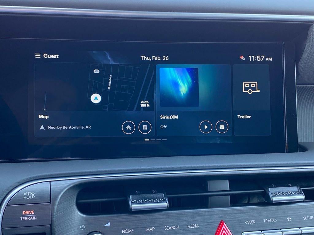 2.5L Turbocharged GDI 4-Cylinder Hybrid, 100W Charging Cable, 14 Speakers, 3rd row seats: split-bench, 4-Wheel Disc Brakes, ABS brakes, Air Conditioning, Alloy wheels, AM/FM radio: SiriusXM, Apple CarPlay & Android Auto, Audio memory, Auto High-beam Headlights, Auto-dimming door mirrors, Auto-dimming Rear-View mirror, Auto-leveling suspension, Automatic temperature control, Brake assist, Bumpers: body-color, Cargo Tray, Carpeted Floor Mats, Compass, Delay-off headlights, Driver door bin, Driver vanity mirror, Dual front impact airbags, Dual front side impact airbags, Electronic Stability Control, Emergency communication system: None, Exterior Parking Camera Rear, First Aid Kit, Four wheel independent suspension, Front anti-roll bar, Front Bucket Seats, Front Center Armrest, Front dual zone A/C, Front reading lights, Fully automatic headlights, Garage door transmitter: HomeLink, Genuine wood console insert, Genuine wood dashboard insert, Heads-Up Display, Heated and Ventilated Front Bucket Seats, Heated door mirrors, Heated front seats, Heated rear seats, Heated steering wheel, HVAC memory, Illuminated entry, Knee airbag, Leather steering wheel, Low tire pressure warning, Memory seat, Mud Guards, Navigation System, Occupant sensing airbag, Option Group 01, Outside temperature display, Overhead airbag, Overhead console, Panic alarm, Passenger door bin, Passenger vanity mirror, Power door mirrors, Power driver seat, Power Liftgate, Power moonroof, Power passenger seat, Power steering, Power windows, Premium Nappa Leather Seat Trim, Radio data system, Radio: Infotainment Navigation System, Rain sensing wipers, Rear air conditioning, Rear anti-roll bar, Rear audio controls, Rear reading lights, Rear side impact airbag, Rear window defroster, Rear window wiper, Reclining 3rd row seat, Remote keyless entry, Roadside Assistance Kit, Security system, Speed control, Split folding rear seat, Spoiler, Steering wheel mounted audio controls, Tachometer, Telescoping steering wheel, Tilt steering wheel, Traction control, Trip computer, Turn signal indicator mirrors, Variably intermittent wipers, Ventilated front seats, Ventilated rear seats, Wheels: 21 x 8.5J Alloy.