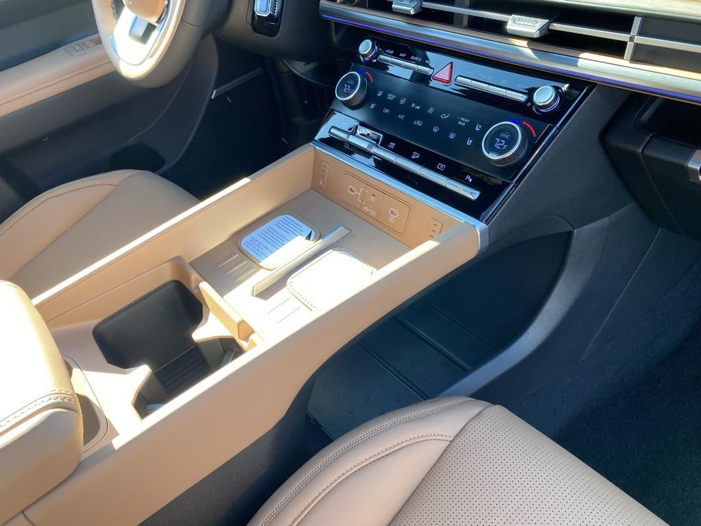 Santa Fe Hybrid Calligraphy, 4D Sport Utility, AWD, White, Pecan Brown Leather, 12 Speakers, 3rd row seats: bench, 4-Wheel Disc Brakes, ABS brakes, Air Conditioning, Alloy wheels, Apple CarPlay & Android Auto, Auto-dimming Rear-View mirror, Automatic temperature control, Brake assist, Bumpers: body-color, Cargo Net, Cargo Organizer, Carpeted Floor Mats, Delay-off headlights, Driver door bin, Driver vanity mirror, Dual front impact airbags, Dual front side impact airbags, Electronic Stability Control, Emergency communication system, Exterior Parking Camera Rear, First Aid Kit, Four wheel independent suspension, Front anti-roll bar, Front Center Armrest, Front dual zone A/C, Front reading lights, Fully automatic headlights, Garage door transmitter: HomeLink, Heads-Up Display, Heated door mirrors, Heated rear seats, Heated steering wheel, Illuminated entry, Knee airbag, Leather steering wheel, Low tire pressure warning, Memory seat, Mudguards, Navigation System, Occupant sensing airbag, Option Group 01, Outside temperature display, Overhead airbag, Overhead console, Panic alarm, Passenger door bin, Passenger vanity mirror, Power door mirrors, Power driver seat, Power Liftgate, Power moonroof, Power passenger seat, Power steering, Power windows, Quilted Premium Nappa Leather Seat Trim, Radio: AM/FM/HD Bose Premium Audio System, Rain sensing wipers, Rear anti-roll bar, Rear side impact airbag, Rear window defroster, Rear window wiper, Remote keyless entry, Security system, Speed control, Speed-sensing steering, Split folding rear seat, Spoiler, Steering wheel mounted audio controls, Tachometer, Telescoping steering wheel, Tilt steering wheel, Traction control, Trip computer, Turn signal indicator mirrors, Variably intermittent wipers, Wheels: 20 x 8.5J Unique Dark Finish Alloy.