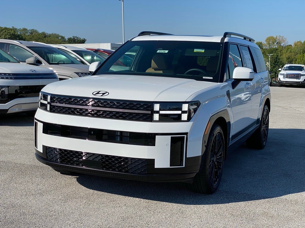 Santa Fe Hybrid Calligraphy, 4D Sport Utility, I4, 6-Speed Automatic with Shiftronic, AWD, Pecan Brown Leather, 12 Speakers, 3rd row seats: bench, 4-Wheel Disc Brakes, ABS brakes, Air Conditioning, Alloy wheels, AM/FM radio: SiriusXM, Apple CarPlay & Android Auto, Auto High-beam Headlights, Auto-dimming Rear-View mirror, Automatic temperature control, Brake assist, Bumpers: body-color, Cargo Blocks, Cargo Cover/Screen, Cargo Net, Cargo Tray, Carpeted Floor Mats, Delay-off headlights, Driver door bin, Driver vanity mirror, Dual front impact airbags, Dual front side impact airbags, Electronic Stability Control, Emergency communication system, Exterior Parking Camera Rear, First Aid Kit, Four wheel independent suspension, Front anti-roll bar, Front Bucket Seats, Front Center Armrest, Front dual zone A/C, Front reading lights, Fully automatic headlights, Garage door transmitter: HomeLink, Heads-Up Display, Heated door mirrors, Heated front seats, Heated rear seats, Heated steering wheel, Illuminated entry, Knee airbag, Leather steering wheel, Low tire pressure warning, Memory seat, Mudguards, Navigation System, Occupant sensing airbag, Option Group 01, Outside temperature display, Overhead airbag, Overhead console, Panic alarm, Passenger door bin, Passenger vanity mirror, Power door mirrors, Power driver seat, Power Liftgate, Power moonroof, Power passenger seat, Power steering, Power windows, Quilted Premium Nappa Leather Seat Trim, Radio: AM/FM/HD Bose Premium Audio System, Rain sensing wipers, Rear anti-roll bar, Rear side impact airbag, Rear window defroster, Rear window wiper, Remote keyless entry, Security system, Speed control, Speed-sensing steering, Split folding rear seat, Spoiler, Steering wheel mounted audio controls, Tachometer, Telescoping steering wheel, Tilt steering wheel, Traction control, Trip computer, Turn signal indicator mirrors, Variably intermittent wipers, Ventilated front seats, Wheels: 20 x 8.5J Unique Dark Finish Alloy.