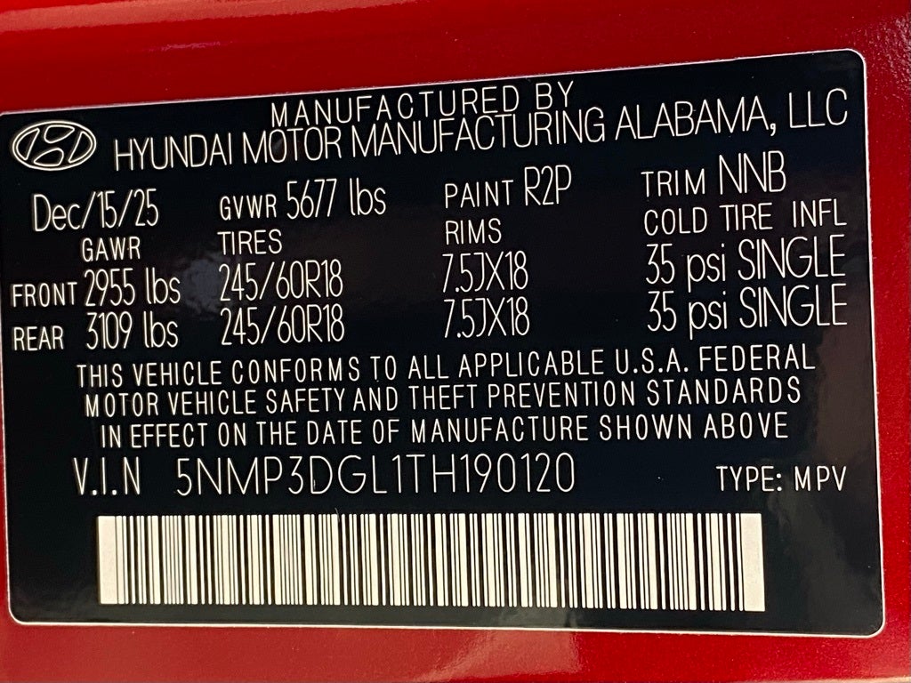 Santa Fe XRT, 4D Sport Utility, AWD, Red, Black Premium Synthetic, 3rd row seats: bench, 4-Wheel Disc Brakes, 6 Speakers, Apple CarPlay & Android Auto, Automatic temperature control, Brake assist, Cargo Cover/Screen, Cargo Net, Carpeted Floor Mats, Electronic Stability Control, Exterior Parking Camera Rear, First Aid Kit, Four wheel independent suspension, Front Center Armrest, Front dual zone A/C, Fully automatic headlights, H-Tex Leatherette Seat Trim, Heated door mirrors, Heated Front Bucket Seats, Illuminated entry, Navigation System, Option Group 01, Overhead console, Power Liftgate, Power moonroof, Radio: AM/FM/HD Display Audio, Rear window defroster, Remote keyless entry, Security system, Spoiler, Steering wheel mounted audio controls, Turn signal indicator mirrors, Wheels: 18 x 7.5J Dark Alloy.