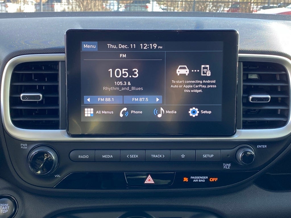 Venue SEL, 4D Sport Utility, Shimmering Silver, Black Cloth, 4-Wheel Disc Brakes, 6 Speakers, 6.5J x 17 Alloy Wheels, Apple CarPlay & Android Auto, Automatic temperature control, Brake assist, Cargo Net, Carpeted Floor Mats, Electronic Stability Control, First Aid Kit, Front Center Armrest, Fully automatic headlights, Heated door mirrors, Heated Front Bucket Seats, Illuminated entry, Option Group 01, Overhead console, Power moonroof, Radio: AM/FM/HD Display Audio, Rear Bumper Applique, Remote keyless entry, Reversible Cargo Tray, Security system, Spoiler, Steering wheel mounted audio controls.