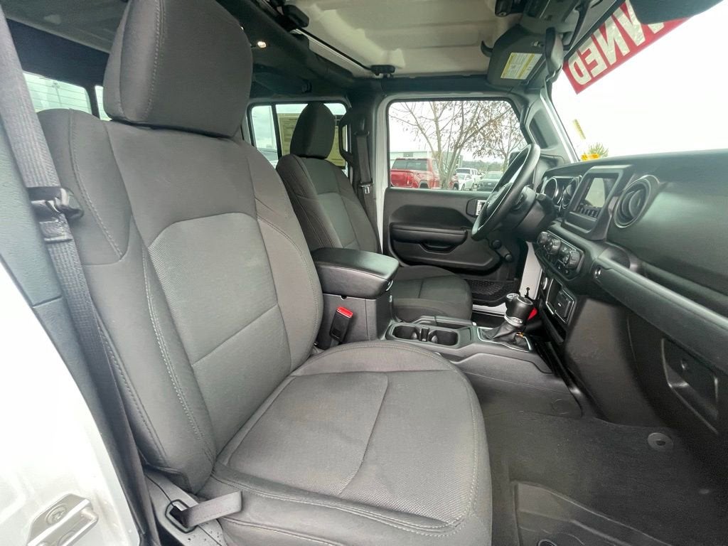 New Tires, Gladiator Sport, 4D Crew Cab, 3.6L V6 24V VVT, 8-Speed Automatic, 4WD, Bright White Clearcoat, Black w/Cloth Low-Back Bucket Seats or Leather Trimmed Bucket Seats (YL), 240 Amp Alternator, 3.73 Rear Axle Ratio, 4-Wheel Disc Brakes, 4G LTE Wi-Fi Hot Spot, 8 Speakers, ABS brakes, AM/FM radio, Apple CarPlay, Apple CarPlay/Android Auto, Black 3-Piece Hard Top, Brake assist, Class IV Receiver Hitch, Cloth Low-Back Bucket Seats, Compass, Delay-off headlights, Driver door bin, Driver vanity mirror, Emergency communication system, Freedom Panel Storage Bag, Front anti-roll bar, Front Bucket Seats, Front Center Armrest w/Storage, Front fog lights, Front reading lights, Google Android Auto, GPS Antenna Input, Heavy-Duty Engine Cooling, Integrated Center Stack Radio, Integrated roll-over protection, Integrated Voice Command w/Bluetooth®, Low tire pressure warning, Normal Duty Suspension, Outside temperature display, ParkView Rear Back-Up Camera, Passenger door bin, Passenger vanity mirror, Quick Order Package 23B Sport, Quick Order Package 24B Sport, Radio data system, Radio: Uconnect 4 w/7 Display, Rear anti-roll bar, Rear reading lights, Rear Sliding Window, Rear Window Defroster, Speed control, Split folding rear seat, Steering wheel mounted audio controls, Tachometer, Telescoping steering wheel, Tilt steering wheel, Trailer Hitch Zoom, Trailer Tow Package, Trip computer, USB Host Flip, Variably intermittent wipers, Wheels: 17 x 7.5 Black Steel Styled.