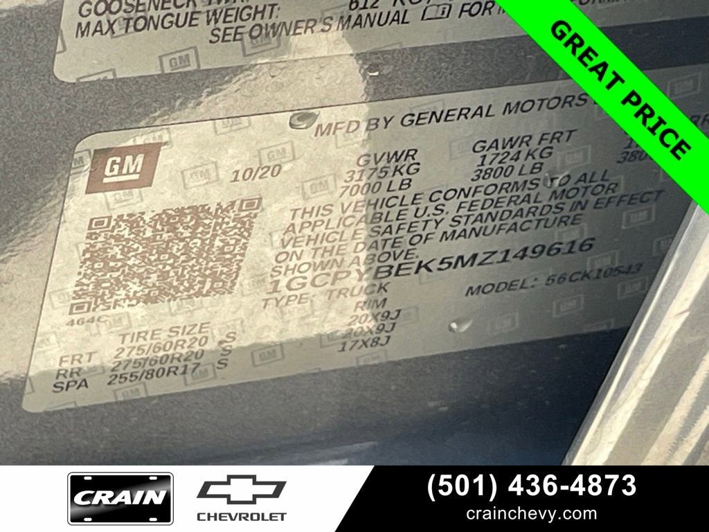 100 Hour Love It or Leave It Exchange Policy, 100 Year or 100,000 Mile Power-Train Warranty, *** Clean CARFAX ***, Cruise Control, Steering Wheel Controls, Keyless Entry, Bluetooth®, USB / AUV Ports, MP3 Player, SiriusXM Satellite Radio, Remote Start System, Wireless Apple CarPlay, Wireless Google Android Auto, Alloy Wheels, Premium Wheels, Premium Audio, Wi-Fi Hotspot Capability, Color Touchscreen Display, Backup / Rear View Camera, Class IV Tow Hitch, Trailer Brake Controller, REAR VISION CAMERA, TRAILRING PACKAGE WITH HITCH GUIDANCE, Silverado 1500 Custom, 4D Crew Cab, 2.7L Turbo, 8-Speed Automatic, 4WD, Satin Steel Metallic, Jet Black w/Cloth Seat Trim, 120-Volt Bed Mounted Power Outlet, 120-Volt Instrument Panel Power Outlet, 170 Amp Alternator, 220 Amp Alternator, 3.42 Rear Axle Ratio, 3.5 Diagonal Monochromatic Display, 4-Wheel Disc Brakes, 40/20/40 Front Split Bench Seat, 4G LTE Wi-Fi Hot Spot Capable, 6 Speakers, ABS brakes, Air Conditioning, All-Weather Floor Liner (LPO), Alloy wheels, AM/FM radio: SiriusXM, Apple CarPlay/Android Auto, Automatic Stop/Start, Bluetooth® For Phone, Body Color Grille, Brake assist, Bumpers: body-color, Chevrolet Connected Access Capable, Cloth Seat Trim, Color-Keyed Carpeting Floor Covering, Compass, Custom Convenience Package, Custom Value Package, Deep-Tinted Glass, Delay-off headlights, Driver door bin, Driver vanity mirror, Dual front impact airbags, Dual front side impact airbags, Electric Rear-Window Defogger, Electronic Cruise Control, Electronic Stability Control, EZ Lift Power Lock & Release Tailgate, Front anti-roll bar, Front Black Bowtie Emblem (LPO), Front Center Armrest w/Storage, Front Frame-Mounted Black Recovery Hooks, Front reading lights, Front Rubberized Vinyl Floor Mats, Front wheel independent suspension, Fully automatic headlights, Heated door mirrors, Heavy Duty Suspension, Hitch Guidance, Illuminated entry, Infotainment Package, Integrated Trailer Brake Controller, LED Cargo Area Lighting, Low tire pressure warning, Manual Tilt Wheel Steering Column, Occupant sensing airbag, OnStar & Chevrolet Connected Services Capable, Outside temperature display, Overhead airbag, Overhead console, Panic alarm, Passenger door bin, Passenger vanity mirror, Polished Exhaust Tip, Power Door Locks, Power door mirrors, Power Front Windows w/Driver Express Up/Down, Power Front Windows w/Passenger Express Down, Power Rear Windows w/Express Down, Power steering, Power windows, Preferred Equipment Group 1CX, Premium audio system: Chevrolet Infotainment 3, Radio data system, Radio: Chevrolet Infotainment 3 System, Rear 60/40 Folding Bench Seat (Folds Up), Rear reading lights, Rear Rubberized-Vinyl Floor Mats, Rear step bumper, Rear window defroster, Remote Keyless Entry, Remote keyless entry, Remote Vehicle Starter System, Security system, Single-Zone Manual/Semi-Automatic Air Conditioning, SiriusXM Radio, Speed control, Speed-sensing steering, Split folding rear seat, Standard Tailgate, Tachometer, Theft Deterrent System (Unauthorized Entry), Tilt steering wheel, Traction control, Trailering Package, Trip computer, Variably intermittent wipers, Voltmeter, Wheel Locks (Set of 4) (LPO), Wheels: 20 x 9 Bright Silver Painted Aluminum.