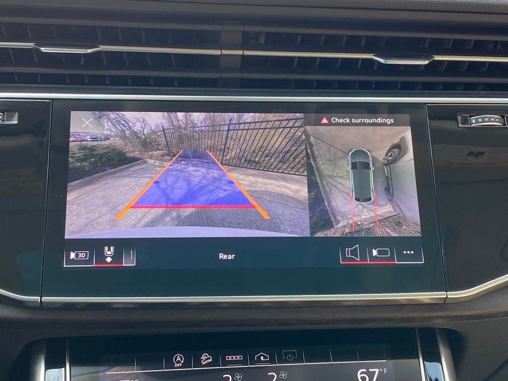 2022 Audi Q8 quattro 3.0L V6 Turbocharged DOHC 24V LEV3-ULEV70 335hp 8-Speed Automatic with Tiptronic Q8 55 Premium Plus quattro, 4D Sport Utility, 3.0L V6 Turbocharged DOHC 24V LEV3-ULEV70 335hp, 8-Speed Automatic with Tiptronic, quattro, Leather, 10 Speakers, 21 5-Segment-Spoke-Design Wheels, 4-Wheel Disc Brakes, ABS brakes, Adaptive suspension, Air Conditioning, Alloy wheels, AM/FM radio: SiriusXM, Audi smartphone interface (Apple CarPlay/Android Auto), Auto High-beam Headlights, Auto-dimming door mirrors, Auto-dimming Rear-View mirror, Automatic temperature control, Axle Ratio: TBD, Brake assist, Bumpers: body-color, Compass, Delay-off headlights, Driver door bin, Driver vanity mirror, Dual front impact airbags, Dual front side impact airbags, Electronic Stability Control, Emergency communication system: Audi connect CARE, PRIME & PLUS, Exterior Parking Camera Rear, Four wheel independent suspension, Front anti-roll bar, Front Bucket Seats, Front Center Armrest, Front dual zone A/C, Front fog lights, Front reading lights, Fully automatic headlights, Garage door transmitter: HomeLink, Genuine wood door panel insert, Heated door mirrors, Heated Front Bucket Seats, Heated front seats, Illuminated entry, Leather Seating Surfaces, Leather Shift Knob, Leather steering wheel, Low tire pressure warning, Memory seat, Navigation system: Audi MMI Navigation plus with Touch Response, Occupant sensing airbag, Outside temperature display, Overhead airbag, Overhead console, Panic alarm, Passenger door bin, Passenger vanity mirror, Power door mirrors, Power driver seat, Power Liftgate, Power moonroof: Panoramic, Power passenger seat, Power steering, Power windows, Radio data system, Radio: MMI Nav Plus w/MMI Touch Response, Rain sensing wipers, Rear air conditioning, Rear anti-roll bar, Rear fog lights, Rear reading lights, Rear seat center armrest, Rear side impact airbag, Rear window defroster, Rear window wiper, Remote keyless entry, Roof rack: rails only, Security system, Speed control, Speed-sensing steering, Split folding rear seat, Spoiler, Steering wheel memory, Steering wheel mounted audio controls, Tachometer, Telescoping steering wheel, Tilt steering wheel, Traction control, Trip computer, Turn signal indicator mirrors, Variably intermittent wipers.