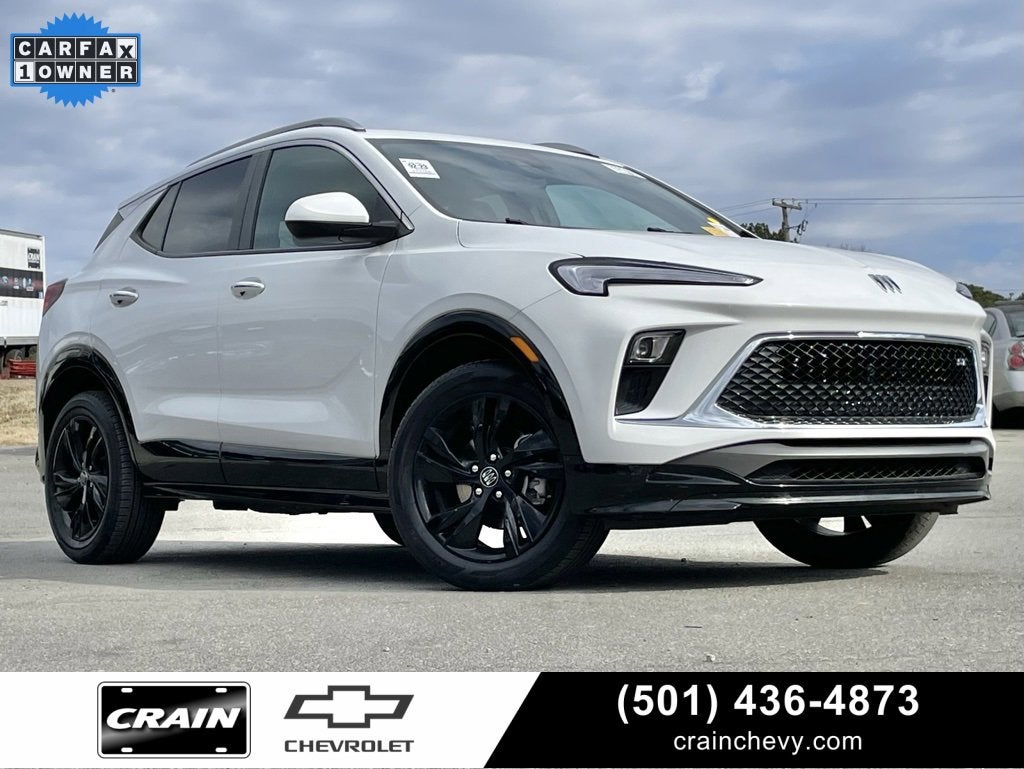 100 Hour Love It or Leave It Exchange Policy, 100 Year or 100,000 Mile Power-Train Warranty, *** 1 Owner CARFAX ***, Leather, Steering Wheel Controls, Bluetooth®, USB / AUV Ports, MP3 Player, SiriusXM Satellite Radio, Wireless Apple CarPlay, Wireless Google Android Auto, Alloy Wheels, Premium Wheels, Parking Sensors, Blind Spot Warning System, Rear Cross Traffic Alert and Braking, Lane Keep Assist, Forward Collision Alert, Premium Audio, Color Touchscreen Display, Backup / Rear View Camera, ACTIVE NOISE CANCELLATION, Encore GX Sport Touring, 4D Sport Utility, ECOTEC 1.3L Turbo, CVT, FWD, Summit White, Ebony w/Ebony Accents w/Leather-Appointed Seat Trim, 2 USB Ports (1 Type-A, 1 Type-C), 4-Way Manual Passenger Seat Adjuster, 4-Wheel Disc Brakes, 5.45 Final Drive Axle Ratio, 6 Speakers, 6-Way Manual Driver Seat Adjuster, ABS brakes, Air Conditioning, Alloy wheels, AM/FM radio: SiriusXM, Auto High-beam Headlights, Automatic temperature control, Brake assist, Bumpers: body-color, Compass, Delay-off headlights, Deleted 3 Years of OnStar Remote Access, Driver door bin, Driver vanity mirror, Dual front impact airbags, Dual front side impact airbags, Electronic Stability Control, Emergency communication system: OnStar and Buick connected services capable, Enhanced Performance 6-Speaker System, Front anti-roll bar, Front Bucket Seats, Front Center Armrest, Front reading lights, Front wheel independent suspension, Fully automatic headlights, Heated door mirrors, Illuminated entry, Knee airbag, Leatherette Seat Trim, Low tire pressure warning, Occupant sensing airbag, Outside temperature display, Overhead airbag, Overhead console, Panic alarm, Passenger door bin, Passenger vanity mirror, Power door mirrors, Power steering, Power windows, Preferred Equipment Group 1SD, Radio data system, Radio: Audio System w/AM/FM, Rear reading lights, Rear side impact airbag, Rear window defroster, Rear window wiper, Remote keyless entry, Ride & Handling Suspension, Security system, SiriusXM, Speed control, Speed-sensing steering, Split folding rear seat, Spoiler, Sport steering wheel, Steering wheel mounted audio controls, Tachometer, Telescoping steering wheel, Tilt steering wheel, Traction control, Trip computer, Variably intermittent wipers, Wheels: 18 Gloss Black Aluminum, Wireless Apple CarPlay/Wireless Android Auto.