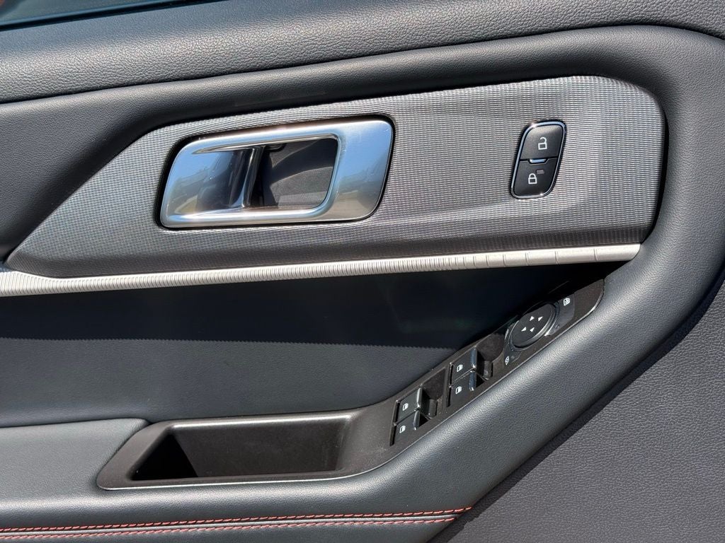 2025 Ford Explorer 4WD 2.3L EcoBoost I-4 10-Speed Automatic Explorer ST-Line, 4D Sport Utility, 2.3L EcoBoost I-4, 10-Speed Automatic, 4WD, Black Metallic, Onyx Cloth, 10 Speakers, 3.58 Non-Limited Slip Rear Axle, 3rd row seats: bench, 4-Wheel Disc Brakes, ABS brakes, Air Conditioning, Alloy wheels, AM/FM radio: SiriusXM with 360L, Apple CarPlay/Android Auto, Auto High-beam Headlights, Automatic temperature control, Brake assist, Bumpers: body-color, Delay-off headlights, Driver door bin, Driver vanity mirror, Dual front impact airbags, Dual front side impact airbags, Electronic Stability Control, Emergency communication system: 911 Assist, Equipment Group 300A Standard Package, Exterior Parking Camera Rear, Four wheel independent suspension, Front anti-roll bar, Front Bucket Seats, Front Center Armrest, Front dual zone A/C, Front fog lights, Front reading lights, Fully automatic headlights, Garage door transmitter, Heated door mirrors, Heated front seats, Heated steering wheel, Heated Unique Cloth Captain's Chairs, Illuminated entry, Internet access capable: FordPass Connect 5G, Knee airbag, Leather steering wheel, Low tire pressure warning, Navigation System, Occupant sensing airbag, Outside temperature display, Overhead airbag, Overhead console, Panic alarm, Passenger door bin, Passenger vanity mirror, Performance Brakes, Power door mirrors, Power driver seat, Power Liftgate, Power passenger seat, Power steering, Power windows, Radio: B&O Sound System by Bang & Olufsen, Rear air conditioning, Rear anti-roll bar, Rear reading lights, Rear window defroster, Rear window wiper, Red Painted Perf Front & Rear Brake Calipers, Remote keyless entry, Security system, Speed control, Speed-sensing steering, Speed-Sensitive Wipers, Split folding rear seat, Spoiler, ST-Line Street Pack, Steering wheel mounted audio controls, Tachometer, Telescoping steering wheel, Tilt steering wheel, Traction control, Trip computer, Variably intermittent wipers, Wheels: 20 Ebony-Painted Machined Aluminum, Wheels: 21 Magnetite-Painted Aluminum. CARFAX One-Owner.